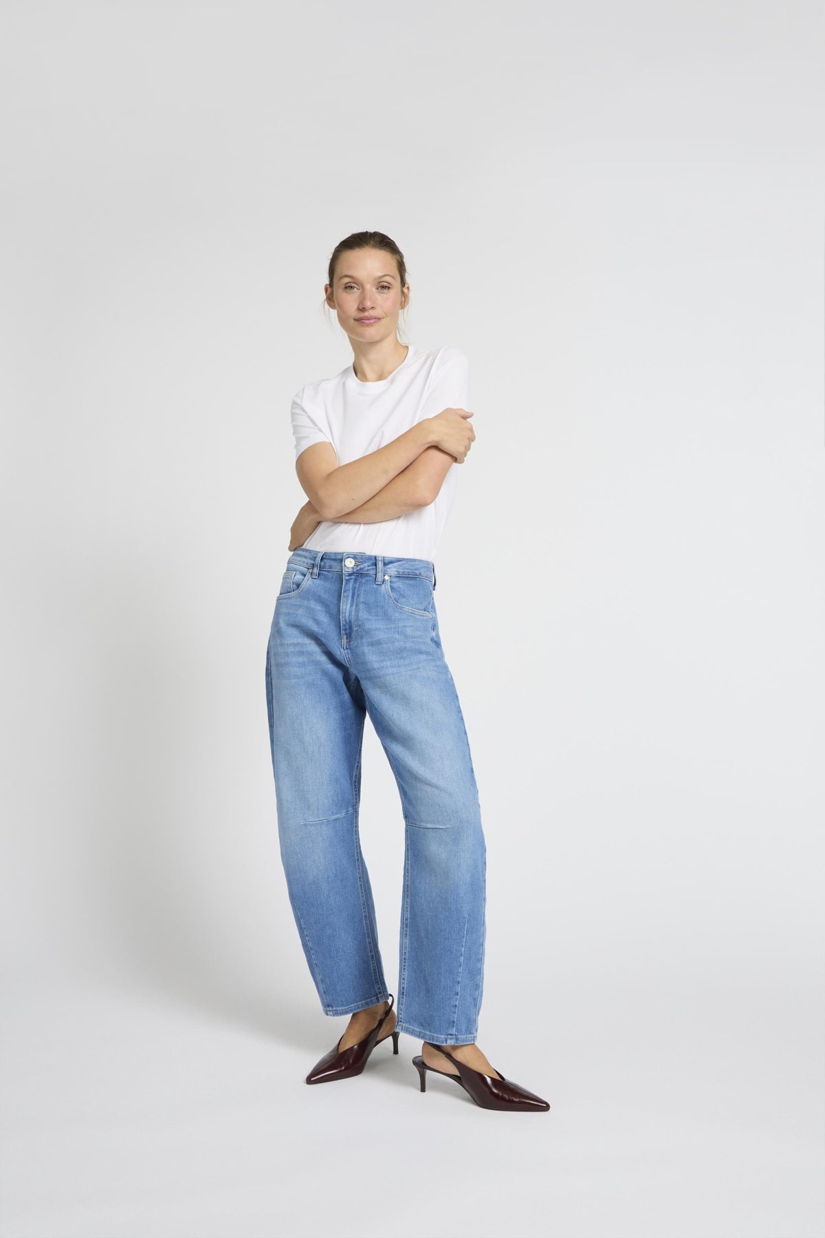 Anni High Waist Barrel Leg Jeans / Medium Blue Denim