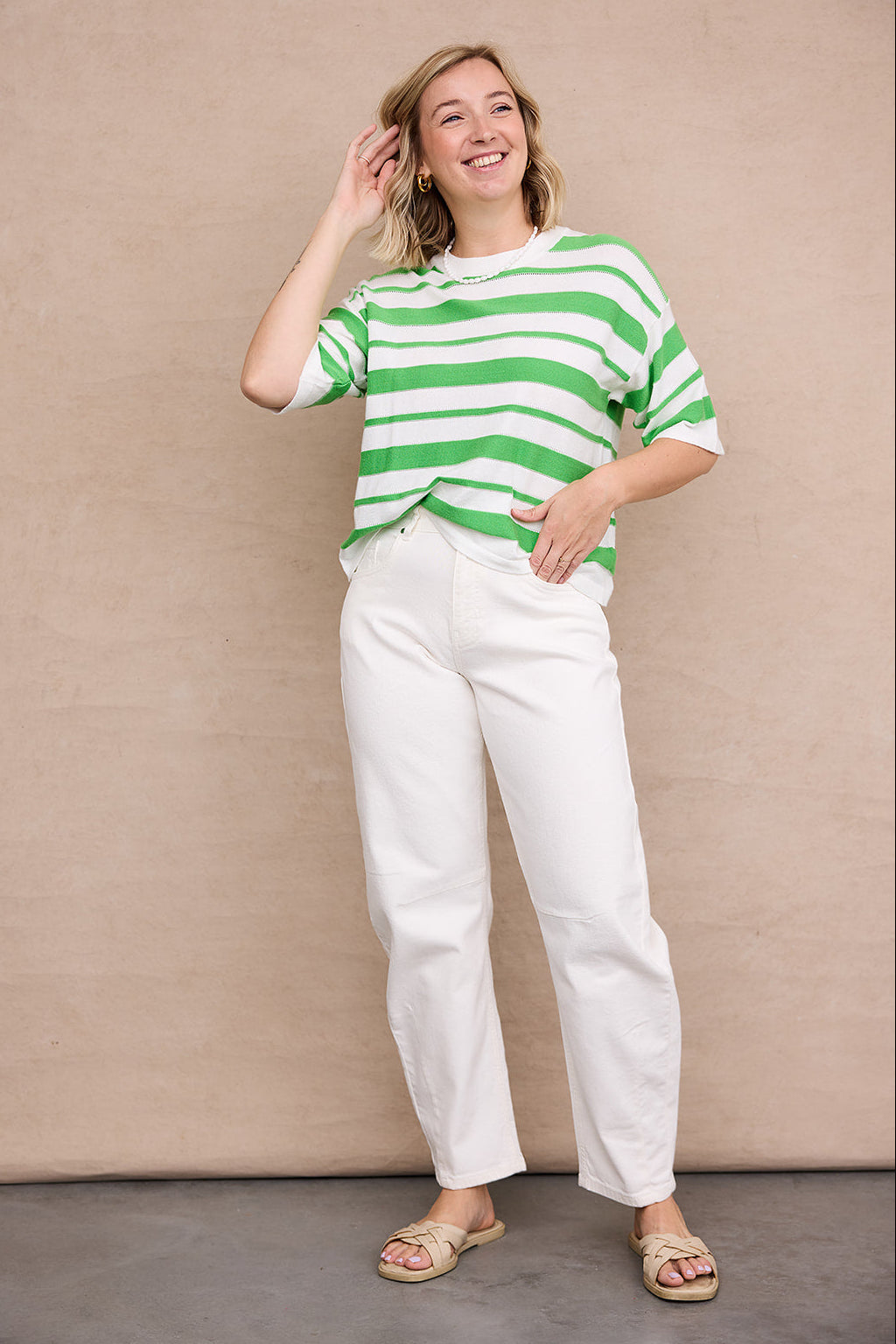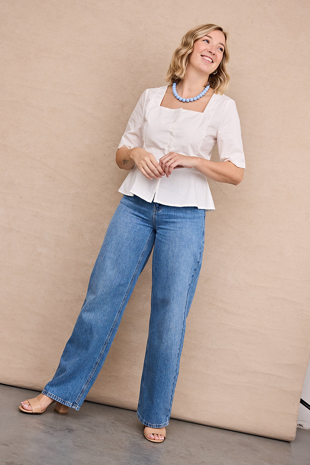 Anni Ecru High Waist Barrel Leg Jeans / Cloud Dancer