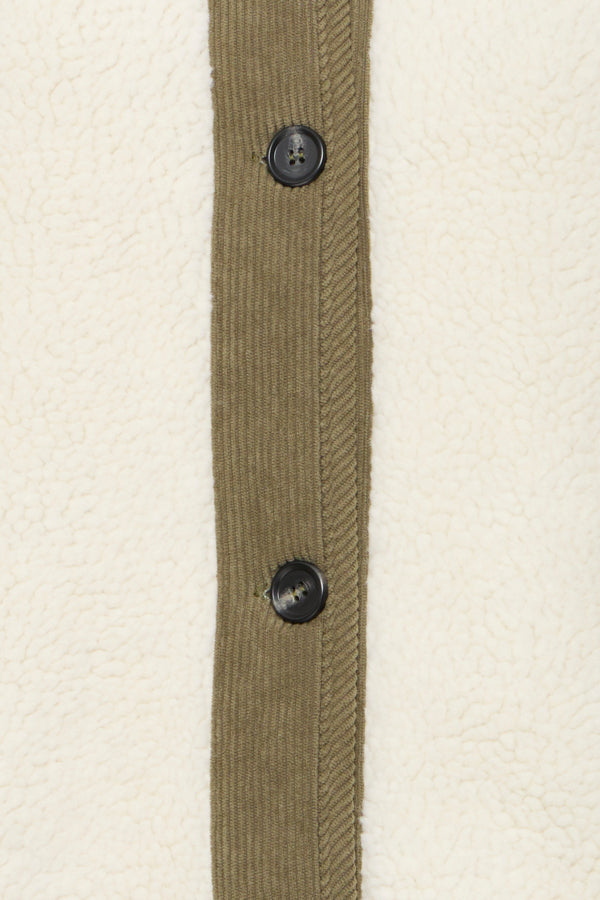 - Bijzondere details: Zakken vooraan, teddy structuur in combinatie met ribfluwelen afwerking.