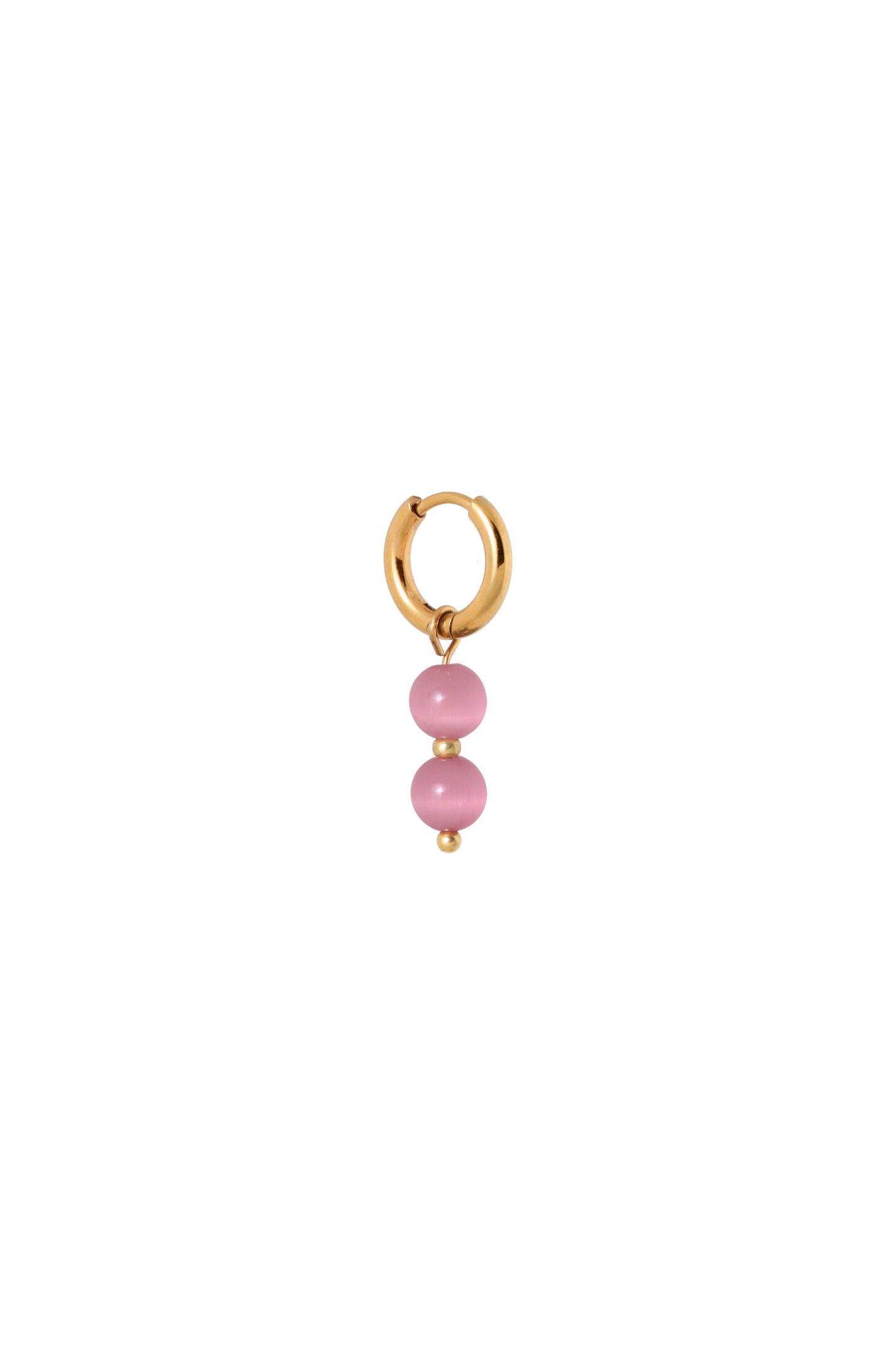 Single Pink Cat Eye Hoop / Gold