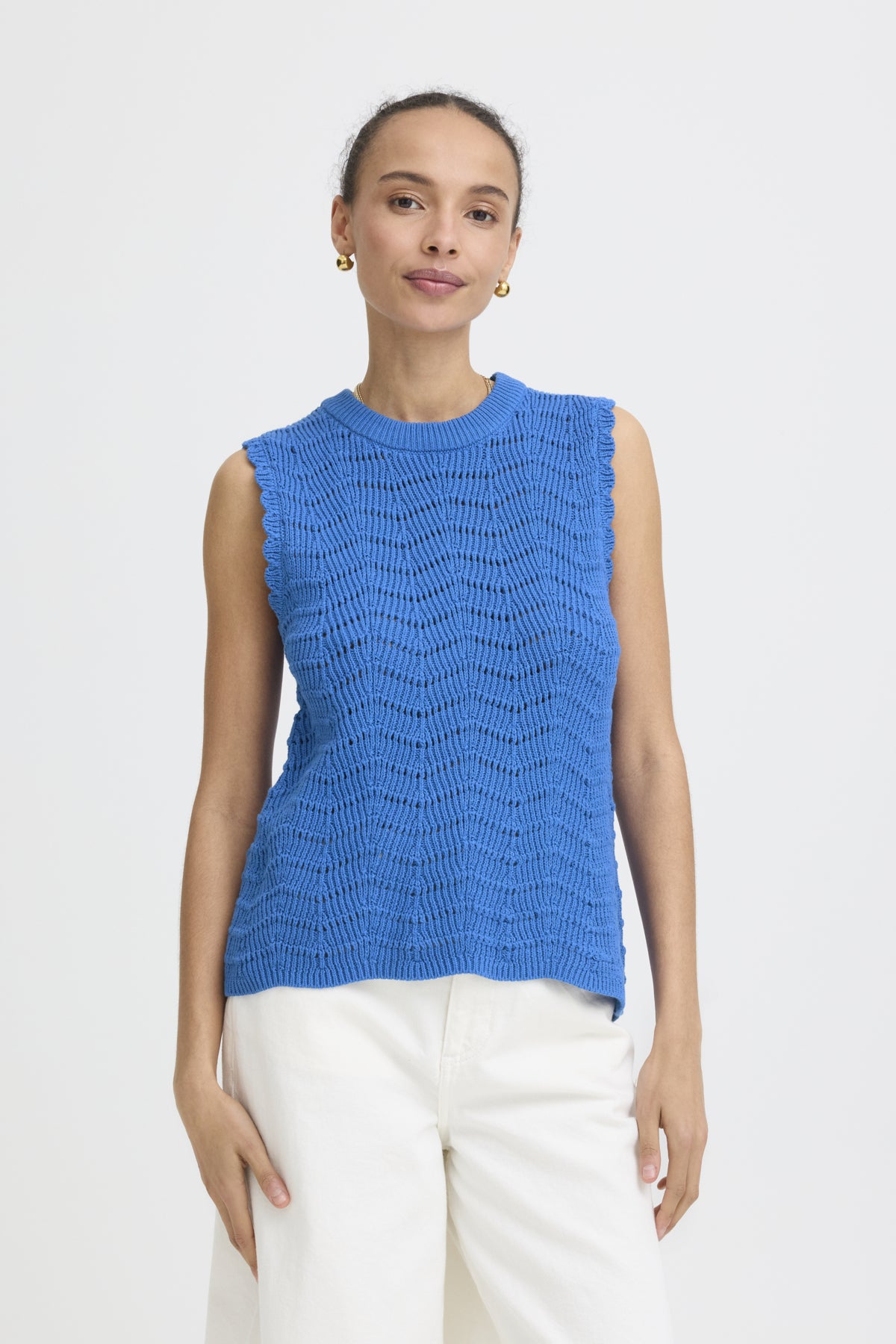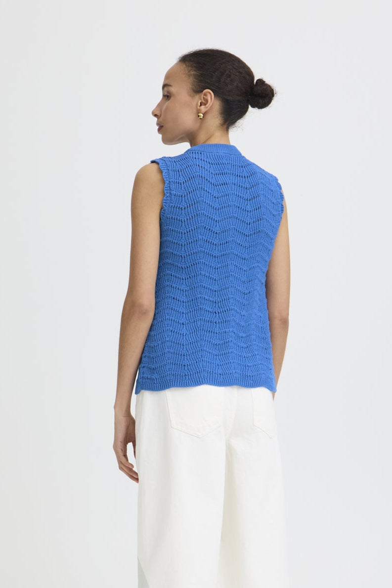 - Details: Fijngebreide top met opengewerkte structuur voor een luchtige, zomerse uitstraling.