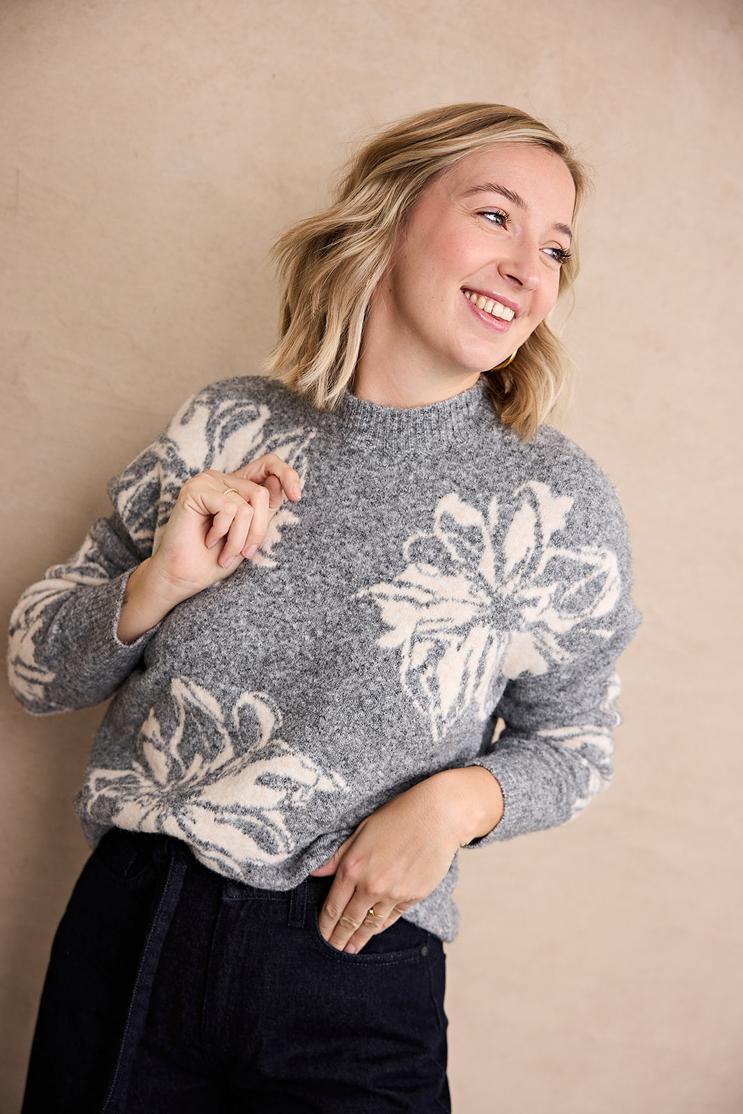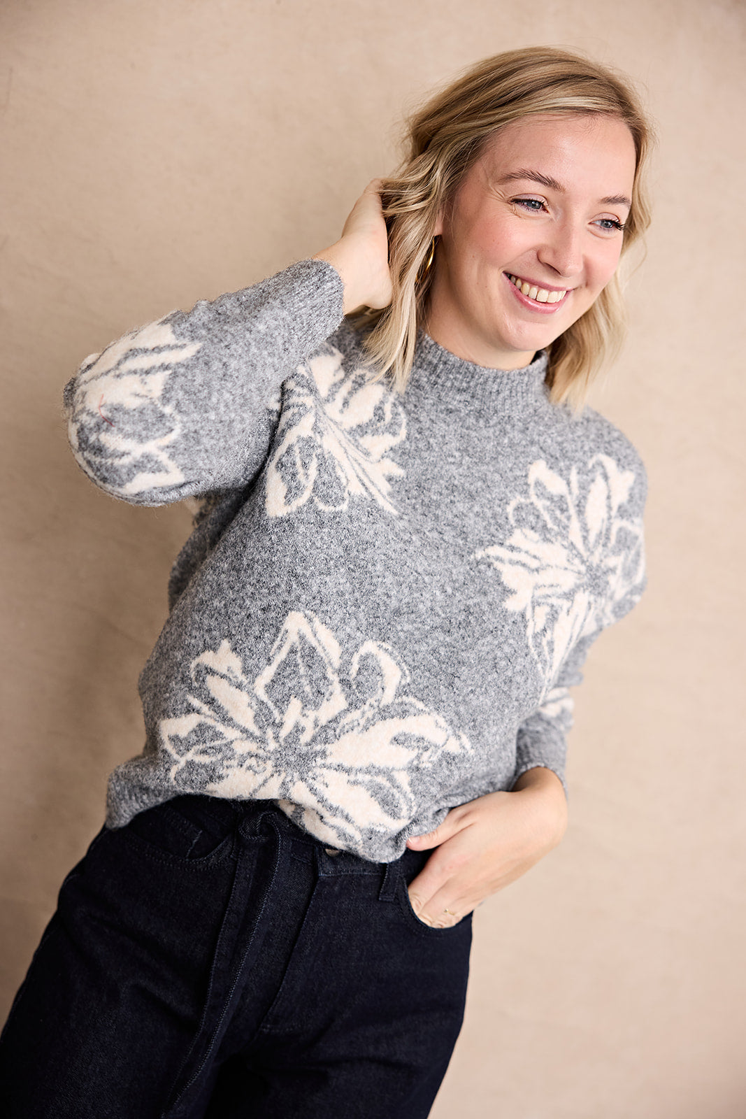 Omea Flower Jumper / Mid Grey Melange Mix